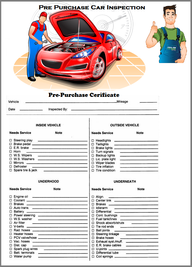 - Imagine that you put a lot of money in buying a vehicle that has many issues patched up. It is thus a very good decision to have a professional pre purchase car inspection done before buying the vehicle of your needs and budget.